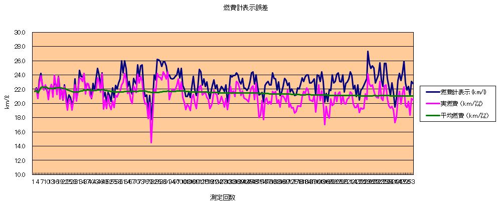実燃費と燃費計表示の差は、更に拡大し、給油量で4L以上違うらしい。燃費計の表示は現実より2位イイ感じで出てます。