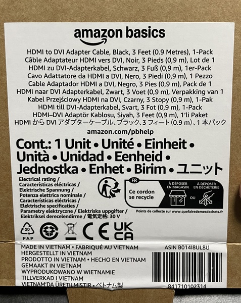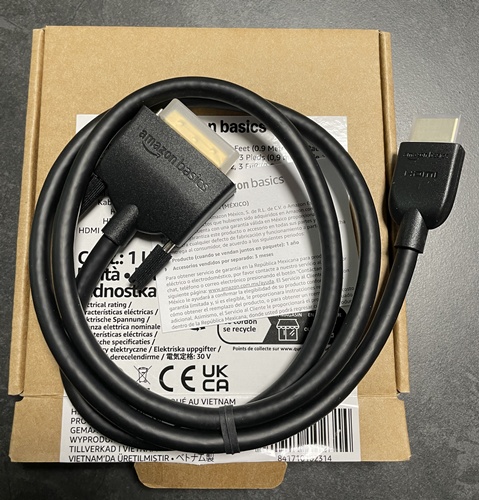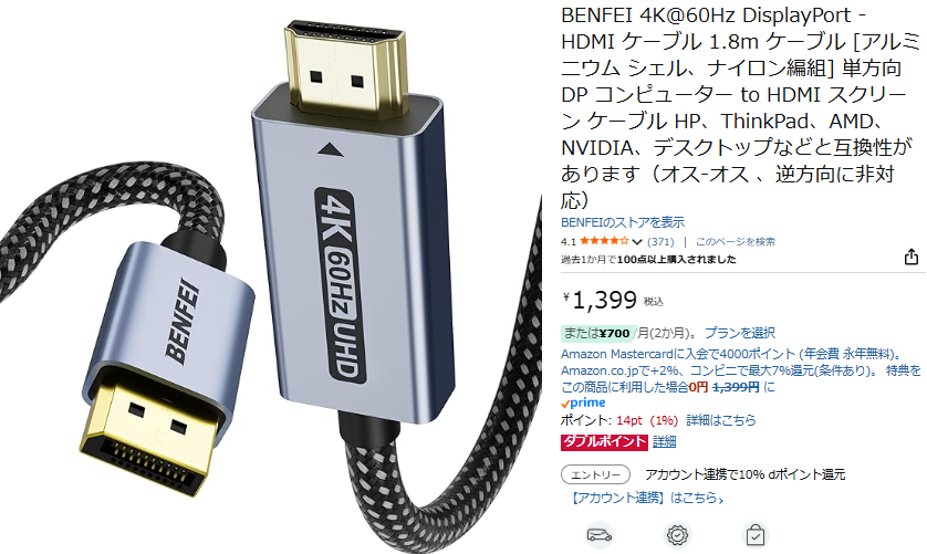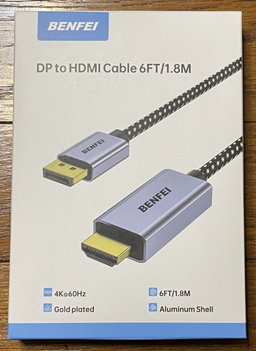 Win11PCはHDMIが1つしかないので、DP→HDMI の変換ケーブルが必要。1399円。