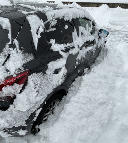 屋根の雪を下すと、ドアが開けられなくなります。これをどこかへ・・・