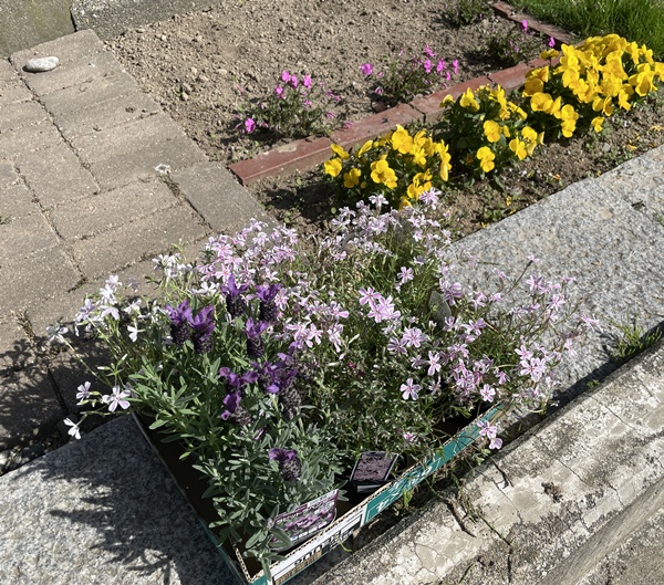 更に、手前のを買いました!淡いピンクの芝桜7株とフレンチらベンター ツインサマーというらしいやつを2株。