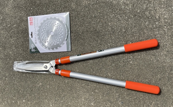 電動草刈り機の刃と刈り込み鋏(ステンレス)を買いました。948円と1880円。